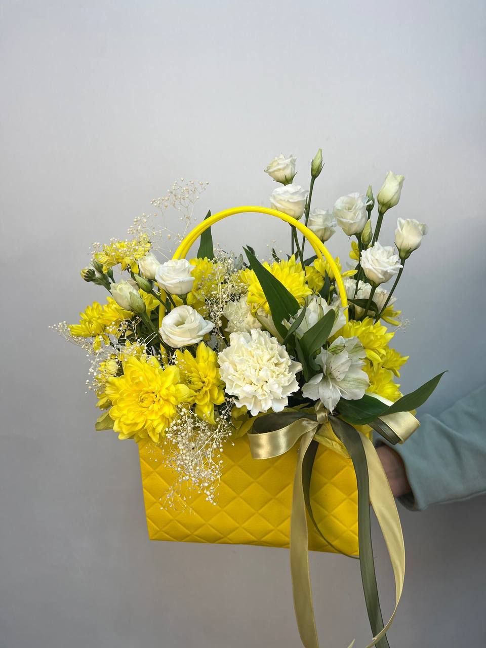 эустома 2шт, кустовая хризантема 2шт, диантус белый 3шт, ь альстромерия 2шт, сухоцветДополнительно